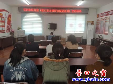 社區(qū)工作者帶領(lǐng)社區(qū)居民認(rèn)真學(xué)習(xí)《營口市文明行為促進(jìn)條例》,宣傳條例中遵守家庭美德、培育弘揚良好家風(fēng);遵守旅游文明行為公約、營造文明和諧旅游環(huán)境;遵守交通規(guī)則,維護(hù)交通秩序;等方面內(nèi)容。