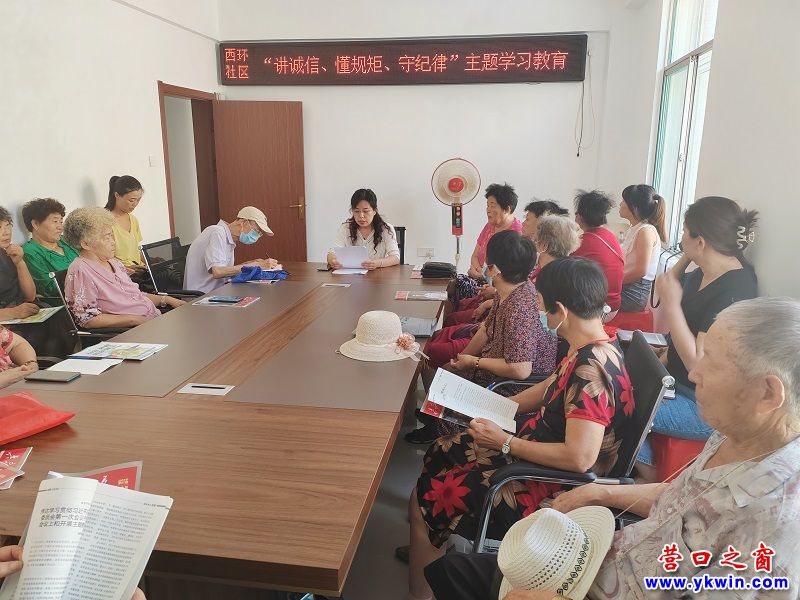 (營(yíng)口之窗社區(qū)訊)8月18日下午,西環(huán)社區(qū)開展“講誠(chéng)信、懂規(guī)矩、守紀(jì)律”主題學(xué)習(xí)教育活動(dòng),提高老黨員的拒腐防變能力,教育黨員要充分發(fā)揮模范帶頭作用,做一名講誠(chéng)信、懂規(guī)矩、守紀(jì)律的合格黨員。