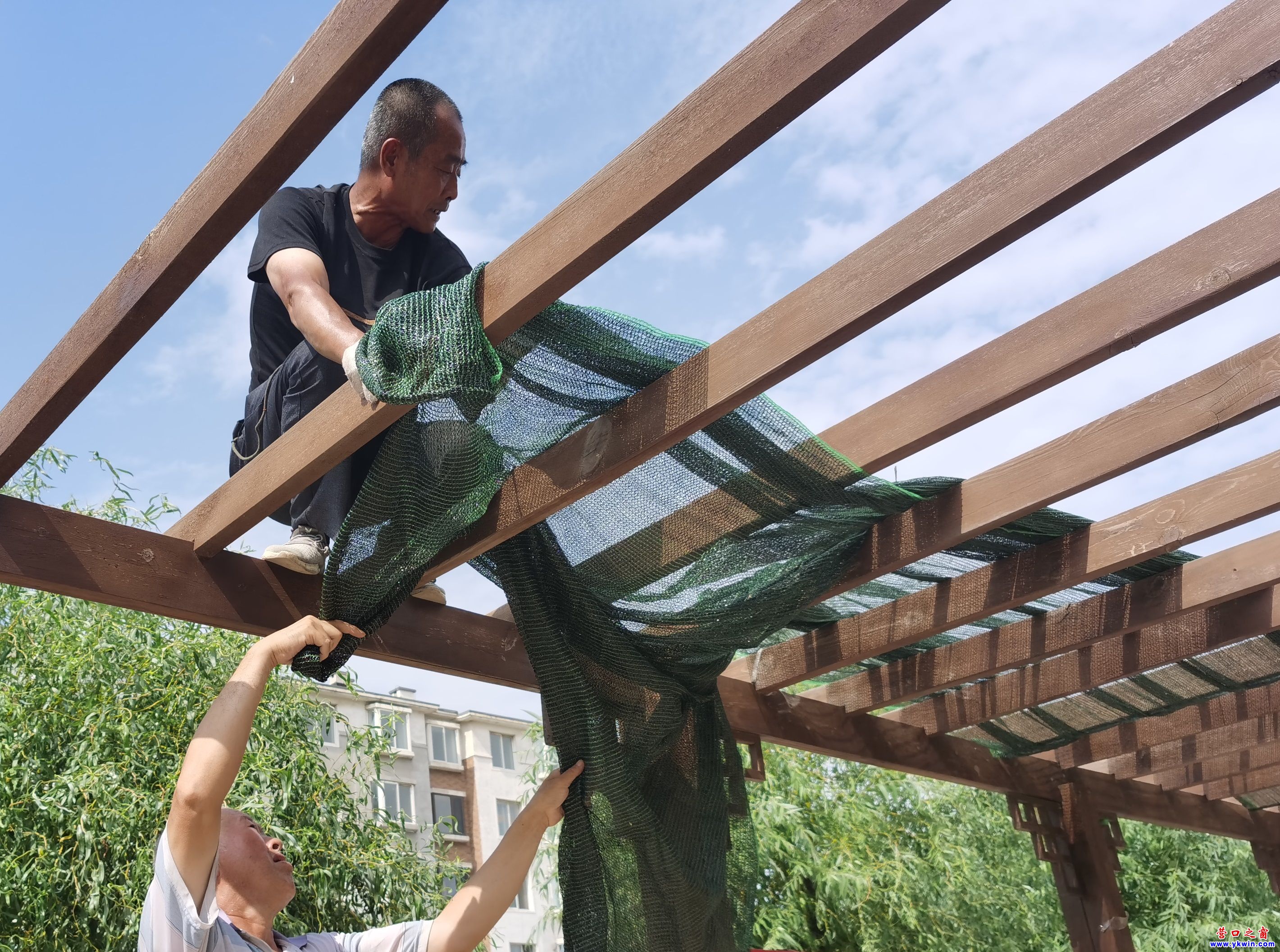 夏日炎炎持續(xù)高溫,為幫助居民度過(guò)一個(gè)清涼的夏日生活,他更不畏自己60多歲的高齡,在4米高的涼亭上鋪設(shè)網(wǎng)布,用實(shí)際行動(dòng)擦亮了“一名黨員,一面旗幟”的名片。