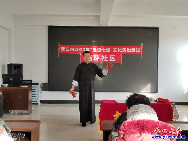 (營口之窗社區(qū)訊)為弘揚中華優(yōu)秀傳統(tǒng)文化,豐富社區(qū)黨員、居民的精神文化生活,滿足社區(qū)居民日益增長的精神文化生活需求,12月12日上午,營口市2023年“五進七送”文化演出走進漁市街道西環(huán)社區(qū)。