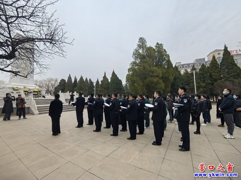 在莊嚴高聳的烈士紀念碑前,來自四家單位的40余名黨員,排成方陣,昂首肅立,目光如炬,追憶著戰(zhàn)火紛飛的崢嶸歲月,并敬獻鮮花。隨后,大家集體脫帽向革命烈士默哀致敬,表達全體黨員對英烈們的崇高敬意和深切緬懷。