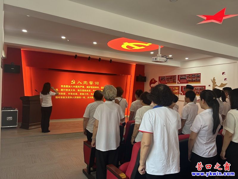 “我志愿加入中國共產(chǎn)黨,擁護黨的綱領(lǐng)……,隨時準備為黨和人民犧牲一切,永不叛黨。”在紅色放映廳的宣誓墻前,全體黨員同志高舉右手,一同重溫入黨誓詞,不忘初心,砥礪前行!