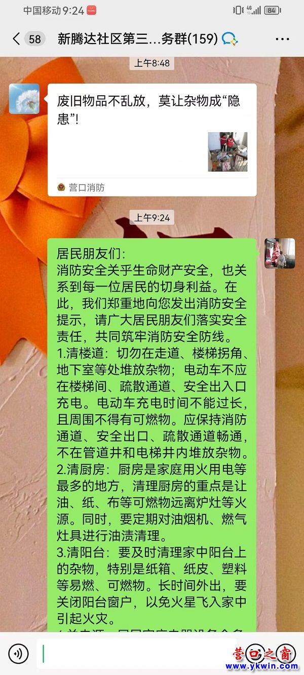 社區(qū)通過“線上+線下”雙渠道開展安全宣傳。線下在各樓棟單元門張貼《溫馨提示》,重點提醒居民注意用火用電用氣安全、防范電動車違規(guī)充電等事項;線上利用網格微信群發(fā)布安全提示信息,確保安全知識“戶戶知曉、人人明白”。
