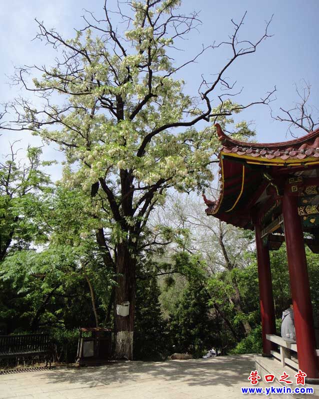 遠(yuǎn)看綠樹披白紗,近觀蜂蝶戲槐花。