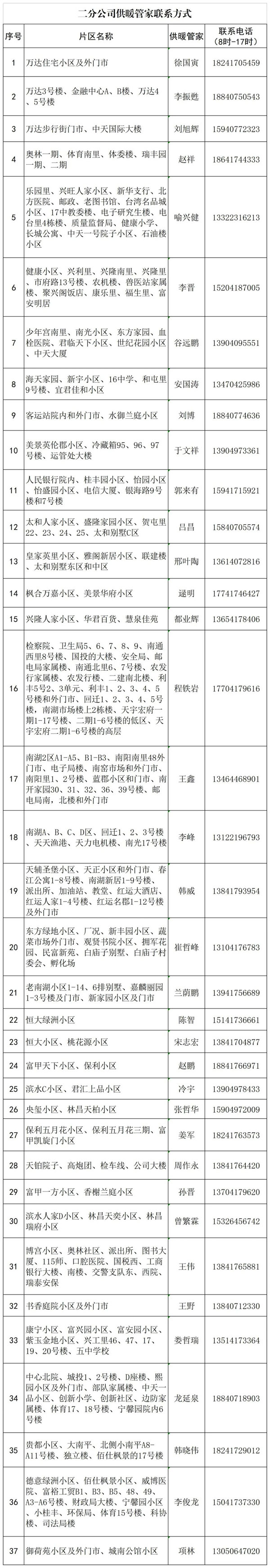 為確保2025-2026年度冬季供暖工作穩(wěn)定運行、服務(wù)高效便捷,現(xiàn)將我集團各供暖區(qū)域供暖管家聯(lián)系方式予以公示,熱用戶如有任何供熱需求請撥打營口熱電集團客服熱線或聯(lián)系所屬區(qū)域供暖管家。