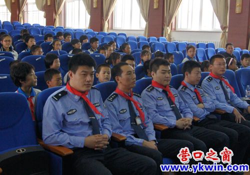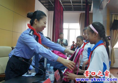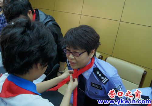 留守兒童為警官代表系上紅領(lǐng)巾;