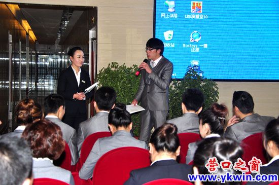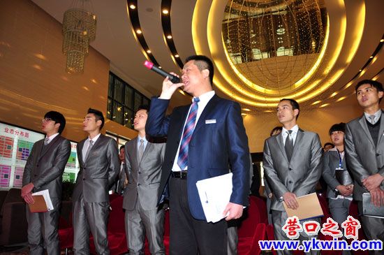 “那一天我不得已上路,為不安分的心,為自尊的生存,為自我的證明……”11月28日早8點30分,營口室氣溫降至零下7度。在許多房地產公司的銷售中心的大門還是緊閉著的時候,歌曲《在路上》的激情旋律已經在營口洲盛國際小商品五金機電博覽城的大廳里回蕩。與室外的滴水成冰相比,他們每周一次的全員培訓總會卻依然熱情如火。