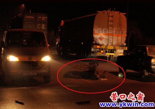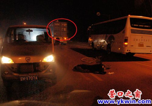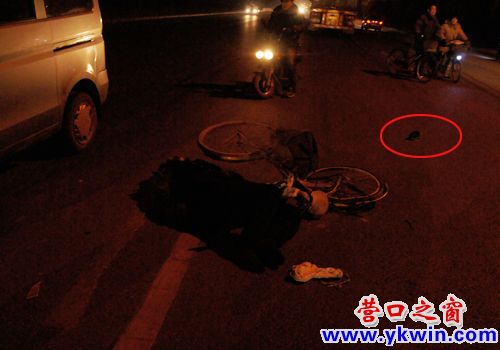 自行車后輪被壓扁,兩只鞋子散落在相距5米遠(yuǎn)的地方,受傷的男子昏迷不醒。