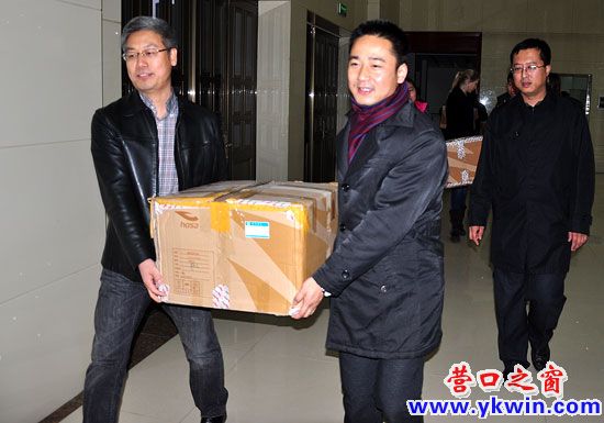 營口興隆購物廣場總經(jīng)理吳迪(左二)和浩沙國際領(lǐng)導(dǎo)攜手搬運(yùn)圣誕禮物