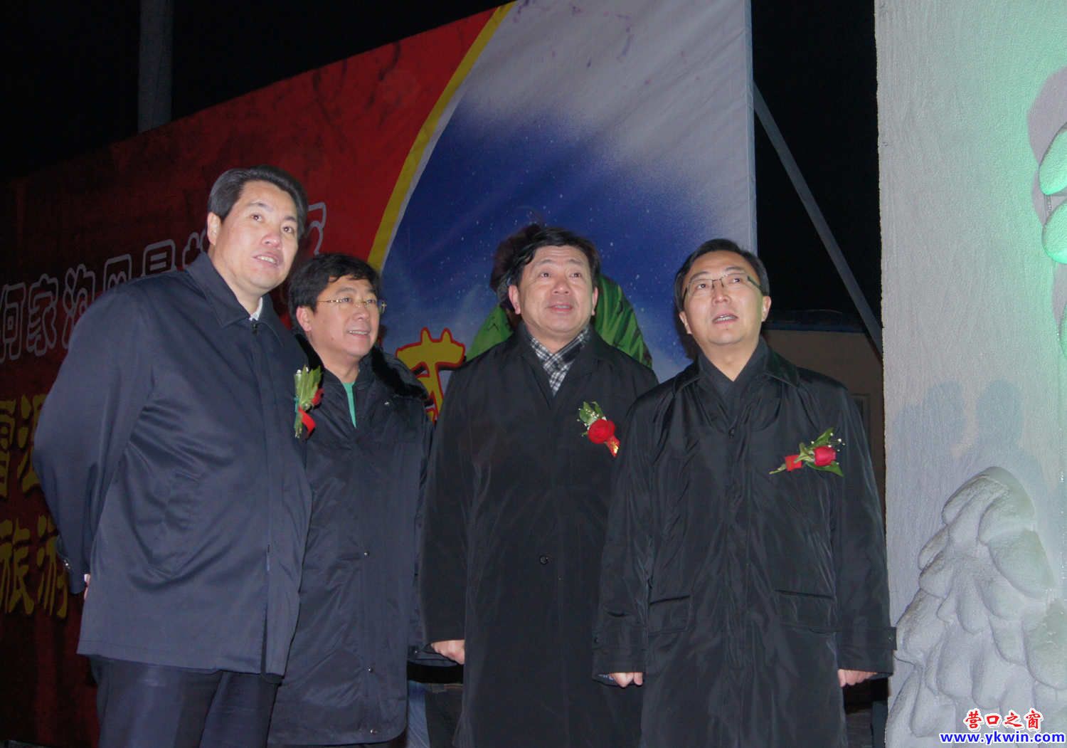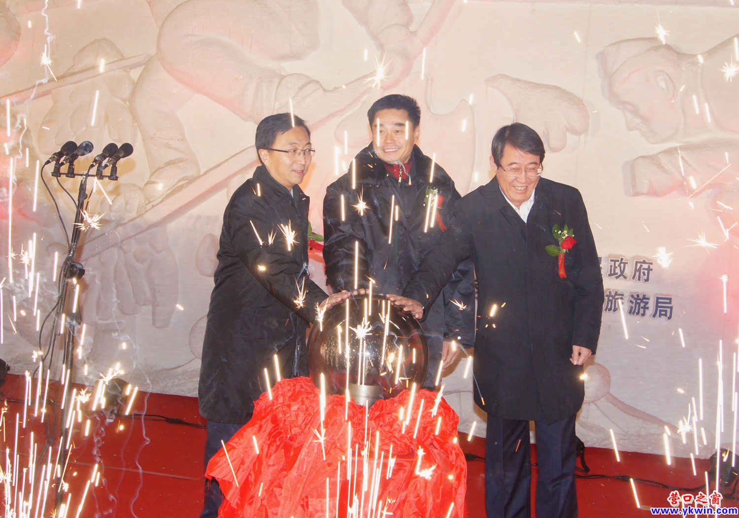 遼寧省旅游局局長武虹劍(中)和營口市領導一同按動開幕式啟動球;
