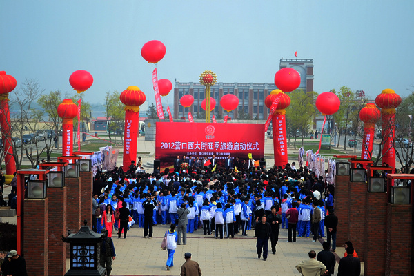 5月1日上午10點(diǎn)整,2012營(yíng)口西大街旺季旅游啟動(dòng)儀式在營(yíng)口市遼河老街廣場(chǎng)隆重舉行,營(yíng)口市政府副市長(zhǎng)王笑柳等領(lǐng)導(dǎo)同志為啟動(dòng)儀式揭幕,會(huì)后營(yíng)口老街負(fù)責(zé)人陪同領(lǐng)導(dǎo)同志參觀了營(yíng)口文化名人館等景觀,本次營(yíng)口西大街旺季旅游啟動(dòng)活動(dòng)游人很多還吸引了許多來(lái)自盤(pán)錦的游客。