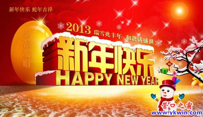 當(dāng)新年鐘聲響徹夜空的時(shí)候,我們迎來(lái)了一個(gè)充滿希望的2013年。值此佳節(jié)之際,營(yíng)口之窗網(wǎng)站的全體員工,首先感謝各界人士在過(guò)去的一年里對(duì)營(yíng)口之窗網(wǎng)站的關(guān)注與支持。向所有關(guān)心支持營(yíng)口之窗的新老朋友表示衷心的感謝,致以親切的問(wèn)候和誠(chéng)摯的祝福!
