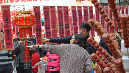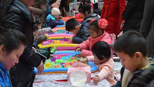 活動(dòng)現(xiàn)場(chǎng),節(jié)日氣氛十足。有幾百條燈謎飄帶和造型精美別致的燈籠,還有手工搖制的元宵和串起的糖葫蘆。“千尺田園、盡在土上,打一字;背著針、滿處竄、小貨郎、不挑單,打一動(dòng)物……”孩子和家長(zhǎng)們興高采烈地徜徉在謎海之中,充分調(diào)動(dòng)思維,努力猜出一條又一條燈謎。在禮品登記處孩子們拿著記錄好的謎底開心雀躍地兌換著充滿童趣的小禮物,歡樂無(wú)比。猜謎的同時(shí)孩子們還了解了元宵節(jié)的來(lái)歷,親自體驗(yàn)元宵的搖制過(guò)程,DIY做蛋糕、插花,玩沙盤,品嘗酸甜的糖葫蘆、酥脆的爆米花,觀看民間工藝人捏面人的絕活。