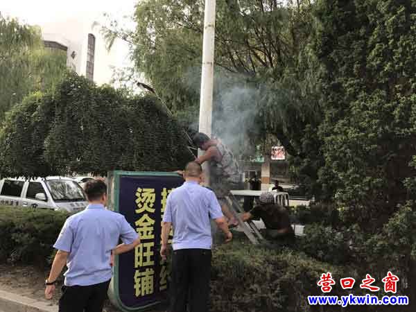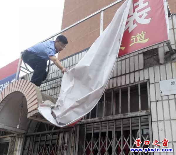 (營(yíng)口之窗網(wǎng)訊 李冠男)受“海棠”臺(tái)風(fēng)影響,8月2日—8月6日,營(yíng)口地區(qū)將有不同程度降雨,在大范圍降雨的同時(shí),伴隨著較強(qiáng)的南風(fēng)。接到氣象通知后,營(yíng)口市城市管理綜合執(zhí)法局西市大隊(duì)立即對(duì)轄區(qū)內(nèi)所有大型戶外廣告設(shè)施進(jìn)行全面排查。
