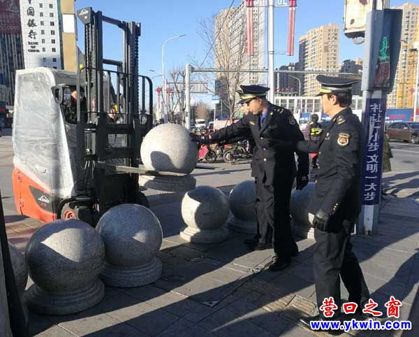 營口市城市管理綜合執(zhí)法局西市執(zhí)法大隊(duì)在瀏覽到這篇文章后,迅速安排部署,并限定時間解決此事。12月12日早8時,派分管大隊(duì)長及屬地中隊(duì)到現(xiàn)場了解情況,經(jīng)調(diào)查,該“景觀”是附近商家為了防止電動車、摩托車車主借此處駛?cè)霃V場,損壞廣場上鋪設(shè)的理石板而設(shè)置形成的。商家的此種行為已經(jīng)違反了《遼寧省城市市容和環(huán)境衛(wèi)生管理規(guī)定》第十三條 城市道路路面及其附屬設(shè)施應(yīng)當(dāng)保持完好、整潔。任何單位和個人不得擅自占用城市道路(廣場);確需在城市道路設(shè)置候車亭、崗?fù)?、書報亭、電話亭、停車場等,必須按照有關(guān)規(guī)定辦理審批手續(xù)。