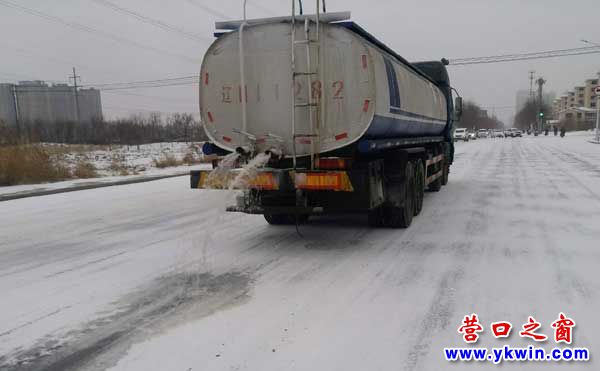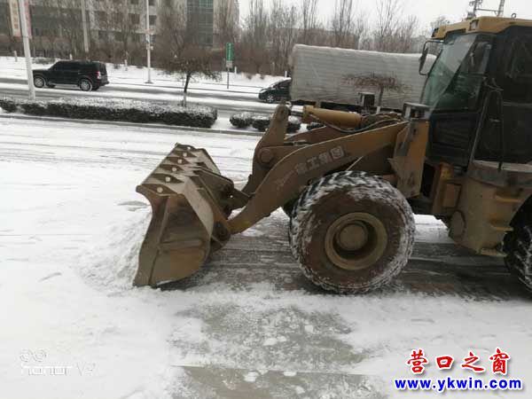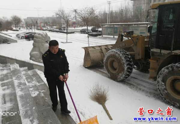 (營口之窗網(wǎng)訊 丁玉玲)1月8日凌晨,2018年第一場雪如期而至,城市道路被厚厚的積雪覆蓋。早就關(guān)注一天24小時(shí)天氣預(yù)報(bào)的營口市綜合執(zhí)法局西市執(zhí)法大隊(duì)的清雪隊(duì)伍,在大隊(duì)領(lǐng)導(dǎo)的組織部署、親自帶領(lǐng)下于早6時(shí)全部集合到單位,啟動(dòng)早就準(zhǔn)備好的車輛、機(jī)械設(shè)備,開啟了除雪“模式”。