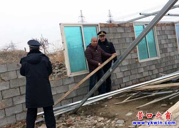 (營口之窗網(wǎng)訊 李冠男)近日,在營口市城市管理綜合執(zhí)法局老邊大隊執(zhí)法隊員的協(xié)助下,老邊區(qū)路南鎮(zhèn)立交橋燃化廠東側(cè)一處在建磚混房屋違法建筑,被當(dāng)事人自行拆除。這是營口市綜合執(zhí)法局整治違法建筑以來,從“強拆”到“自拆”轉(zhuǎn)變的成功案例,充分體現(xiàn)了執(zhí)法者通過“人性化”、“法制化”的執(zhí)法程序,攻破違建者的僥幸和從眾心理,從拆除“心理違章”入手,最終實現(xiàn)拆除現(xiàn)行違章。