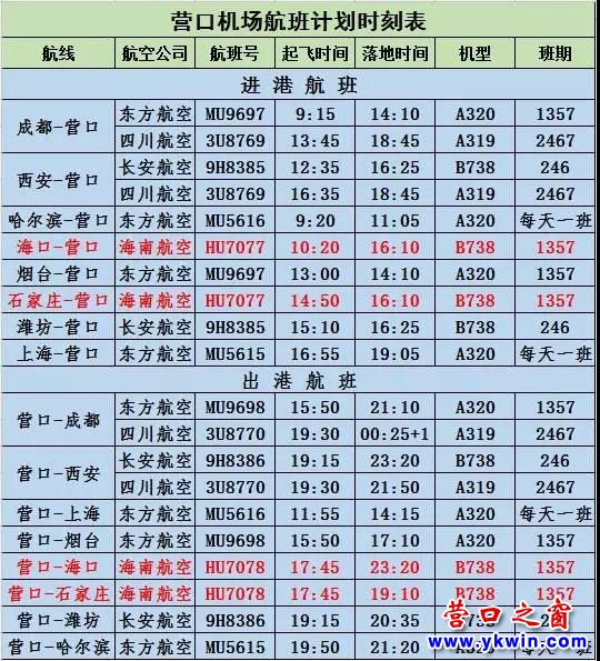 8月10日起,海南航空計(jì)劃新增營(yíng)口=石家莊=??诤骄€,由B737機(jī)型執(zhí)飛,每周一三五七。去程航班17:45營(yíng)口起飛,19:10到達(dá)石家莊,20:05由石家莊起飛,23:20到???;回程航班10:20??谄痫w,13:15到達(dá)石家莊,14:50石家莊起飛,16:10到達(dá)營(yíng)口。