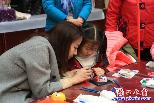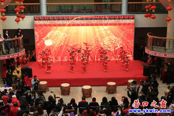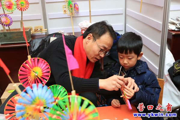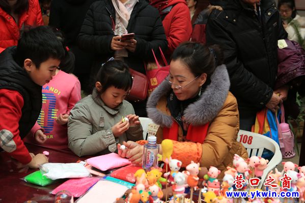 活動現(xiàn)場,青少年宮大廳張燈結(jié)彩、喜氣洋洋,象征炎黃子孫心連心的中國結(jié),表達納福迎祥的剪紙,展現(xiàn)幸福生活的紅福字,抒發(fā)美好愿望的喜慶春聯(lián),寓意闔家團圓的大紅燈籠,喜慶溫馨、五彩斑斕的氣球,巧奪天工的民間工藝人的蘇繡、風箏、年畫、面人、臉譜、吉祥輪風車等作品的展示,讓大集現(xiàn)場充滿了濃濃的年味和民俗情趣。上午9時,在大屏幕鐘聲倒計時的緊張等待中,在一聲歡快的童聲“‘金豬賀歲’營口市第二屆少兒迎春年俗文化大集——開集啦!”之后,歡慶的開場舞蹈《歡歡喜喜過大年》和喜慶的中國鼓、水鼓演奏《中國范兒》為大集熱熱鬧鬧地拉開了序幕。