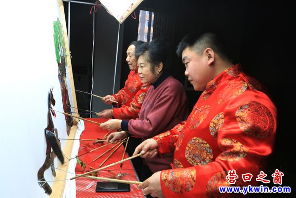 在多功能廳內(nèi)同時演出的是我市非遺文化的代表項目之一蓋州皮影戲?qū)?。藝人們在白色幕布后面,一邊操縱戲曲人物,一邊用流行的曲調(diào)唱述著童話故事,同時配以打擊樂器和弦樂,散發(fā)著濃厚的鄉(xiāng)土氣息。這種拙樸的傳統(tǒng)民間藝術(shù)形式很受孩子們的歡迎。被選入后臺親自操作一次皮影戲的小朋友們,更加是樂翻了天,站在布幕前觀看的孩子們一個一個都目不轉(zhuǎn)睛地盯著,臉上都露出驚奇和快樂的表情。