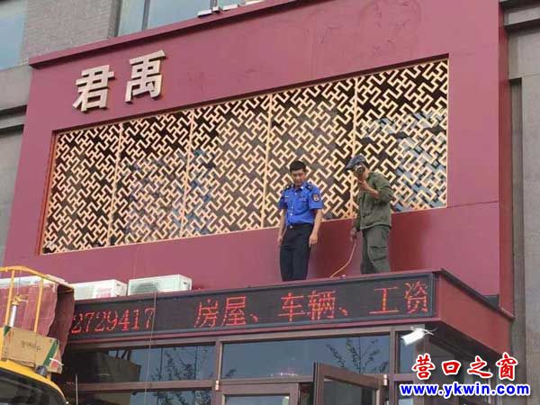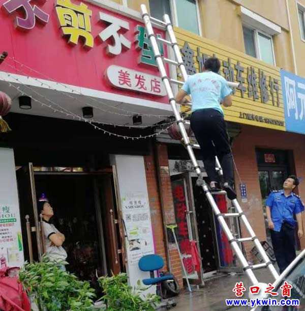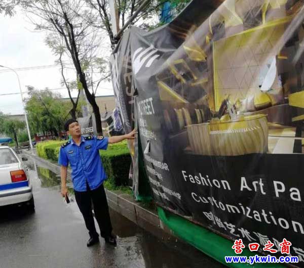 (營口之窗網(wǎng)訊 孫?。╇S著臺(tái)風(fēng)“利奇馬”步步逼近,今日我市風(fēng)力逐漸增大。為保證群眾安全,以防臺(tái)風(fēng)導(dǎo)致戶外廣告設(shè)施毀物傷人事件發(fā)生,幾天來,市城管支隊(duì)二大隊(duì)提前介入,大隊(duì)領(lǐng)導(dǎo)帶領(lǐng)執(zhí)法隊(duì)員對市區(qū)主要道路兩側(cè)和建筑物上的戶外設(shè)施、廣告牌開展了集中排查,嚴(yán)防戶外廣告設(shè)施“帶病上崗”,防患于未然。