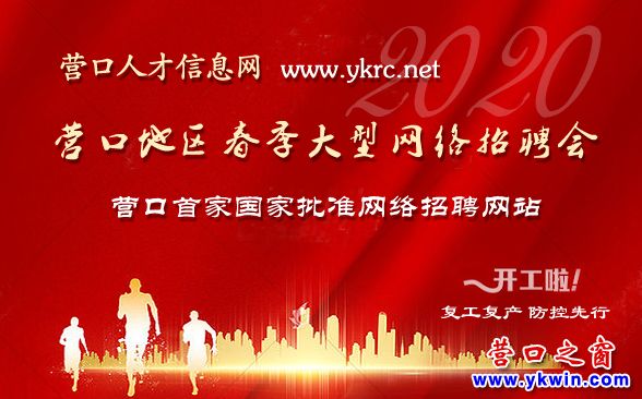 (營(yíng)口之窗網(wǎng)訊 欣聞)日前,營(yíng)口首家國(guó)家批準(zhǔn)的網(wǎng)絡(luò)招聘求職網(wǎng)站“營(yíng)口人才信息網(wǎng)”發(fā)布消息:營(yíng)口地區(qū)春季大型網(wǎng)絡(luò)招聘會(huì),全網(wǎng)新媒體同步啟動(dòng),助推全地區(qū)企業(yè)防控復(fù)工、免費(fèi)為全社會(huì)求職者提供服務(wù)。歡迎各招聘企業(yè)和求職者在網(wǎng)上盡快注冊(cè)登錄使用!