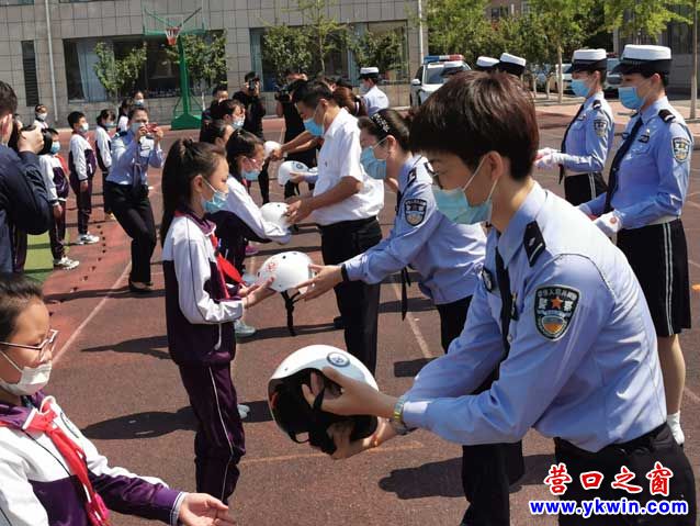 5月29日上午,在營口開發(fā)區(qū)惠民小學(xué)操場上,100頂整齊擺放的白、藍(lán)、粉色安全頭盔,在陽光的照耀下,顯得格外另人矚目。“同學(xué)們,為了我們的生命安全,在乘坐電動車時,大家一定要正確佩戴安全頭盔.....”來自營口港輪駁分公司、營口開發(fā)區(qū)交警大隊及鲅魚圈公益平臺的志愿者們,一邊認(rèn)真耐心地講解頭盔正確佩戴方法,一邊將頭盔一一發(fā)到學(xué)生們手中。