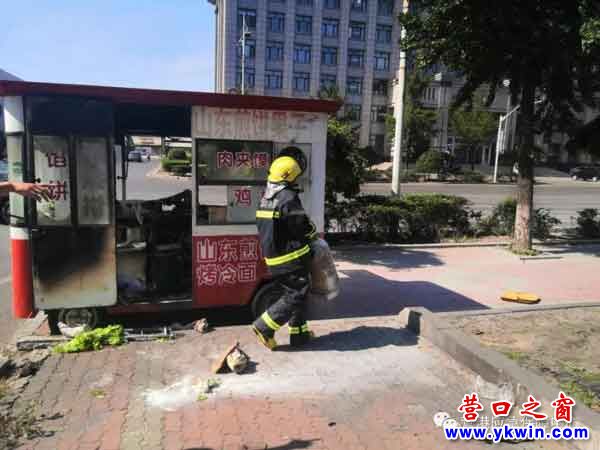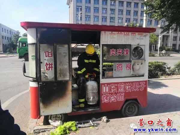 (營口之窗網(wǎng)訊 于娟)6月22日上午8點(diǎn)多,位于營口港區(qū)一號大門外突發(fā)火情,路邊一輛賣煎餅果子的大篷車突然起火,火光沖天。接到報(bào)警后,應(yīng)急保障中心一中隊(duì)調(diào)配一輛消防車、4名消防員立即趕到現(xiàn)場展開救援。當(dāng)聽到周圍群眾說火場內(nèi)還有三個(gè)液化氣罐時(shí),消防員不顧個(gè)人安危,在水槍的掩護(hù)下沖進(jìn)火場將三個(gè)還在呲呲作響的液化氣罐一一拎出,放到空曠安全處,并用水槍給罐體降溫,避免了爆炸事故。