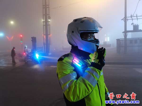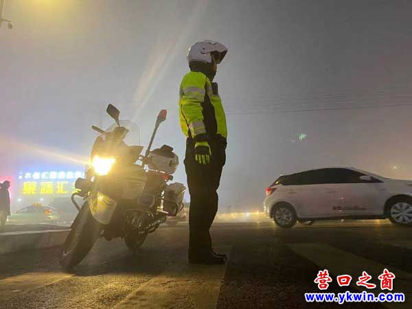 (營(yíng)口之窗網(wǎng)訊 王宏鑫)1月26日,營(yíng)口鲅魚圈區(qū)突遇大霧天氣,道路能見度極低嚴(yán)重影響了車輛安全行駛,為確保群眾大霧天氣安全出行。營(yíng)口開發(fā)區(qū)公安局交警大隊(duì)騎警中隊(duì),迅速開啟惡劣天氣應(yīng)急響應(yīng)機(jī)制,全警動(dòng)員、全天在崗,加強(qiáng)道路交通疏導(dǎo),防止發(fā)生交通擁堵和刮擦事故,確保我區(qū)道路安全、暢通、有序。