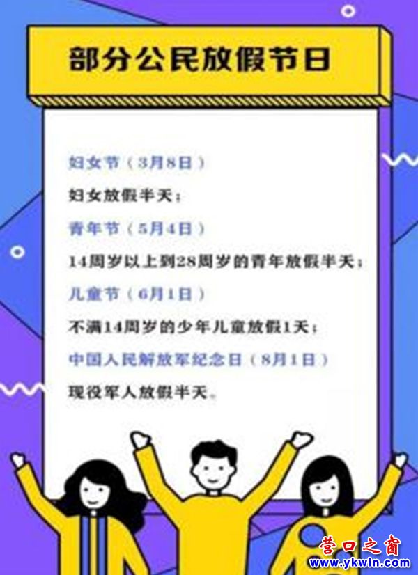 ★法定假日:婦女放假半天的規(guī)定,出自國務(wù)院出臺的《全國年節(jié)及紀念日放假辦法》第三條規(guī)定,三八婦女節(jié)是部分公民放假的節(jié)日,婦女節(jié)放假屬于“法定的半天節(jié)假日”。如果該節(jié)日恰逢星期六、星期日,單位安排職工加班工作,則應(yīng)當依法支付休息日的加班工資;如果適逢星期六、星期日,不再補假。