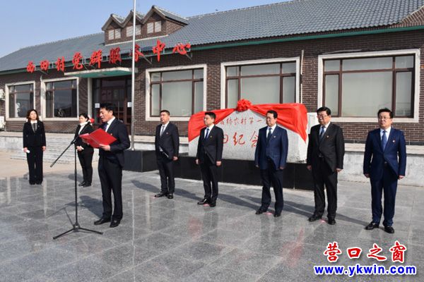在中共大石橋農(nóng)村第一黨支部西田紀(jì)念館揭牌儀式上,市委書記王立偉,市委副書記、市長(zhǎng)韓文志為紀(jì)念館揭牌。