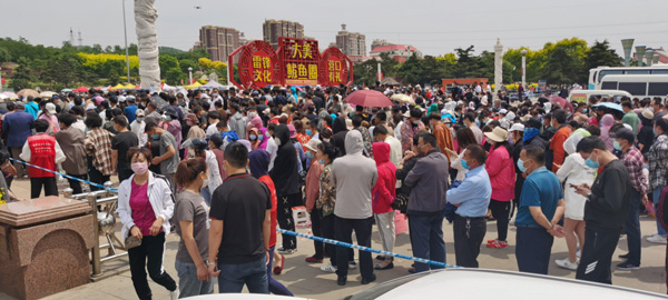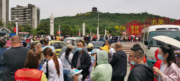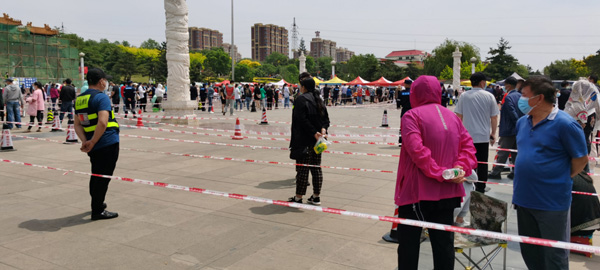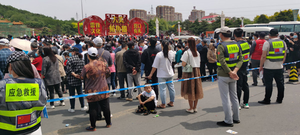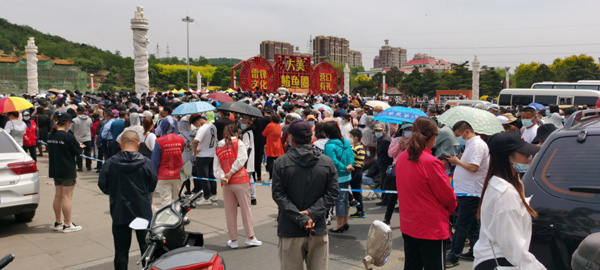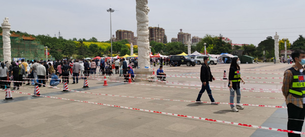 從青龍山上鳥瞰南門的疫苗接種現(xiàn)場(chǎng)。