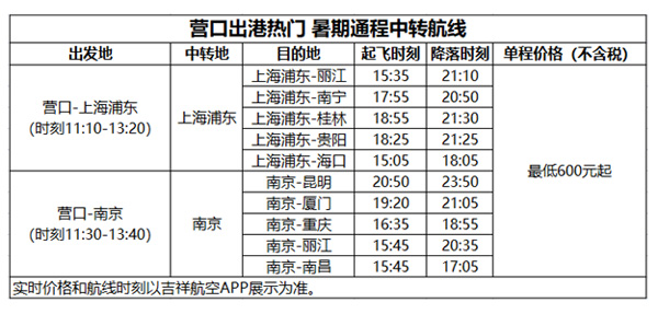 (營口之窗網(wǎng)訊)營口機場攜手吉祥航空 暑運全新中轉航線來啦!