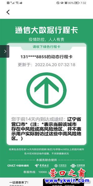 (營口之窗“關(guān)注營口”)喜訊!必須告訴所有營口人,就在剛剛,你的通信行程卡*(星號)標(biāo)記取消了!營口“摘星”了??!