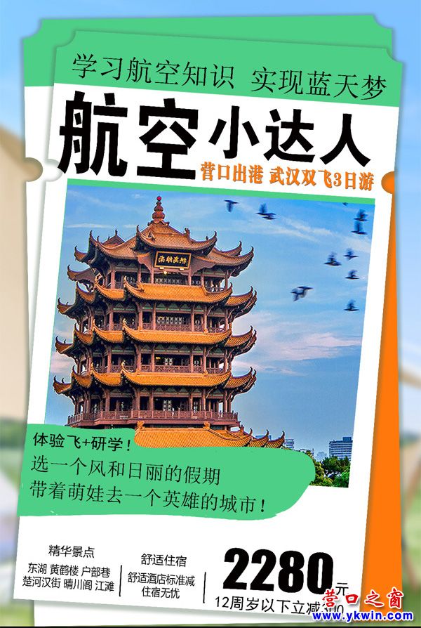 機(jī)票信息:營(yíng)口=武漢 單程票價(jià)520元起