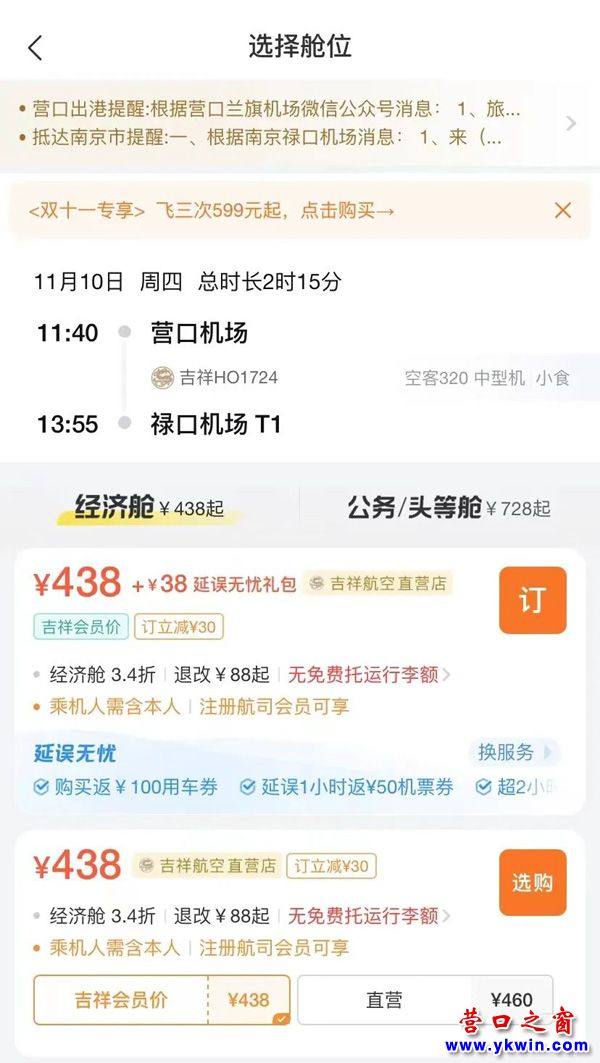 (營(yíng)口之窗“關(guān)注營(yíng)口”)營(yíng)口機(jī)場(chǎng)機(jī)票雙十一來(lái)嘍!這波羊毛我先薅為敬…