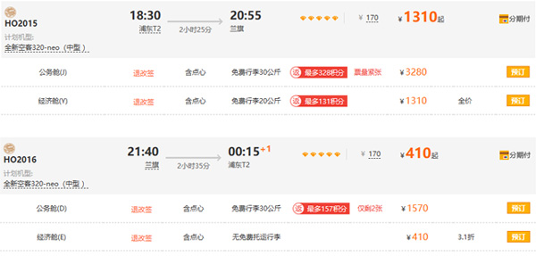 加班航班已上線銷售