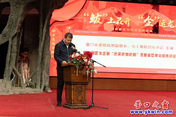 中共營口市委統(tǒng)戰(zhàn)部副部長、營口市工商聯(lián)黨組書記王寅講話,代表市委統(tǒng)戰(zhàn)部、市工商聯(lián)向鲅魚圈的女企業(yè)家們表示衷心的感謝,對年會的召開表示熱烈的祝賀。希望女企聯(lián)和女企業(yè)家們搶抓機遇、積極作為,在創(chuàng)業(yè)創(chuàng)新中再展新姿,要爭做勇?lián)厝蔚南刃姓?、和諧社會的推動者、修身齊家的實踐者。希望女企聯(lián)創(chuàng)新思路、發(fā)揮作用,在“近采近銷近創(chuàng)”中凝聚力量,合縱聯(lián)橫,把更多企業(yè)、資源吸納進來,做好市場調(diào)查分析研判,實現(xiàn)共創(chuàng)、共建、共享、共贏。希望區(qū)委統(tǒng)戰(zhàn)部、區(qū)工商聯(lián)加強指導,優(yōu)化環(huán)境,在推動發(fā)展中提升水平,加強工作指導,注重關心關愛,做好協(xié)調(diào)服務工作,支持女企聯(lián)開展工作,大力宣傳優(yōu)秀創(chuàng)業(yè)女性,加強制度建設,促進女企業(yè)家聯(lián)合會健康發(fā)展,為推進實現(xiàn)營口和鲅魚圈區(qū)全面振興新突破三年貢獻堅強力量。