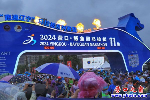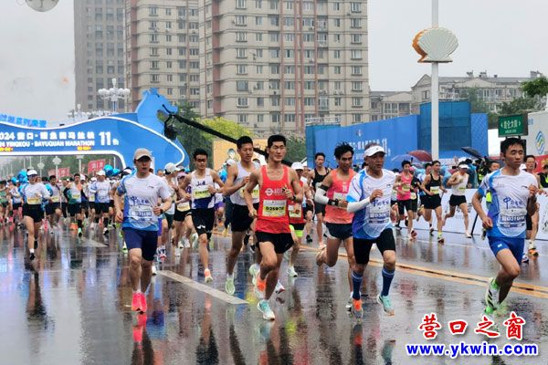 5月26日7點30分,第11屆2024營口.鲅魚圈國際馬拉松賽在雨中鳴槍開賽。