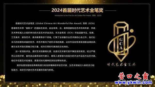 首屆時(shí)代藝術(shù)金筆獎(jiǎng)(Global Chinese Art Wonderful Pen Award)簡(jiǎn)稱(GCA) 是堪稱藝術(shù)界“奧斯卡”的國(guó)際性獎(jiǎng)項(xiàng),由全球英、法、美等國(guó)家知名藝術(shù)機(jī)構(gòu)專家、學(xué)者、 藝術(shù)界權(quán)威人士組織舉辦的大型藝術(shù)評(píng)選活動(dòng)。本次金筆獎(jiǎng)(GCA)評(píng)選涵蓋書(shū)法、繪畫、 工藝美術(shù)、裝飾藝術(shù)、美術(shù)教育等多個(gè)領(lǐng)域。匯聚了全球最杰出藝術(shù)家的心血之作,他們以非凡的創(chuàng)意和卓越的技藝,將藝術(shù)推向了前所未有的高度。這些作品如驚濤駭浪般洶涌澎湃, 展示出藝術(shù)的無(wú)限魅力和力量,成為引領(lǐng)時(shí)代潮流的文化地標(biāo)。
