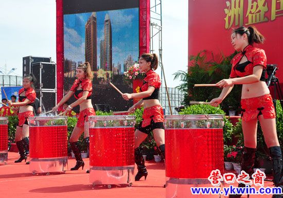 8月19日,洲盛國際小商品·五金機電博覽城暨營銷中心落成典禮儀式上,四名紅衣美女和一名壯男組成的時尚水鼓隊一經亮相,就吸引了眾多參加儀式來訪者的眼球。一段別具一格的開場舞“乘風破浪”將洲盛國際集團投資30億打造80萬平商業(yè)巨艦的雄心壯志,演繹的淋漓盡致。