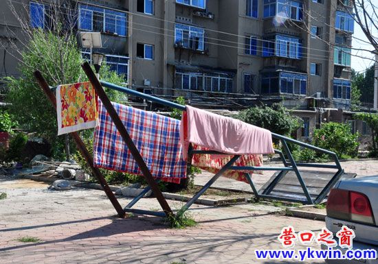 這是筆者在道岔子路口東側(cè)的一個老式樓群中,拍攝的一組圖片。我國自古就有“翻衣?lián)v柜晾衣曬被”的習(xí)俗,市民們經(jīng)常會選擇在天氣晴朗的時候晾曬衣被,而這與城市的文明建設(shè)情況不符,因此曾一度遭到市里的禁止。但是居住在老式居民樓內(nèi)的市民,因?yàn)槭覂?nèi)陽臺面積的狹小,晾曬被子只能在戶外進(jìn)行,成為城市管理的老大難。筆者呼吁,相關(guān)部門能否在樓區(qū)內(nèi)設(shè)立公用的露天晾曬場供市民使用,為營口市創(chuàng)建全國文明城市做出貢獻(xiàn)。