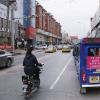 早晨8點(diǎn)左右筆者到達(dá)這個(gè)十字路口發(fā)現(xiàn),許多附近商場的業(yè)主上班需要穿過正在施工的十字路口,不時(shí)有大型的施工車輛駛進(jìn),行人在其中穿梭非常危險(xiǎn)。