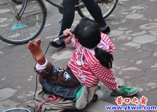 小女孩不斷地向路人展示自己的“八趾腳”,希望能得到更多的錢。