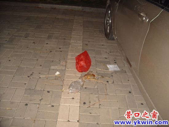 10月16日晚,營口遼濱公園上的停車場上的車已經(jīng)很少了。但是就這么少的車輛中,筆者還是發(fā)現(xiàn)在一輛私家車的兩旁地上有很多吃過的燒烤鉗子,子、垃圾袋、煙頭。難道遼濱公園的停車場就這樣在夜深人靜的時候成了私家車的“垃圾場”?