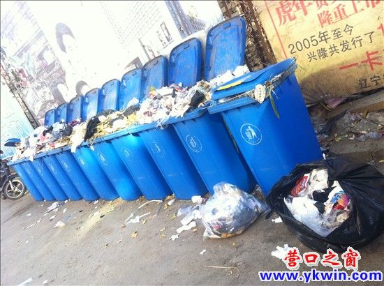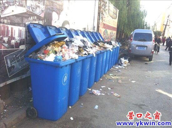 10月25日下午,筆者在從營口電子文化商城南門出來時(shí),竟是一連11個(gè)裝滿了垃圾的垃圾桶迎面而來,場面十分“壯觀”。