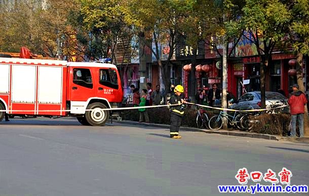 為保群眾安全,消防戰(zhàn)士拉起警戒線。