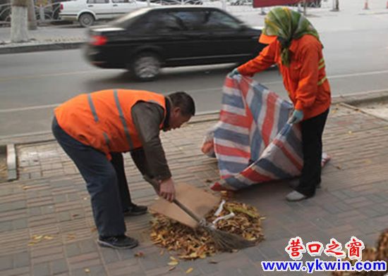 入秋以后,營(yíng)口地區(qū)出現(xiàn)大風(fēng)降溫天氣,一陣涼風(fēng)吹來(lái)讓我們感到秋天真的來(lái)了。秋風(fēng)掃落葉,落葉鋪滿一地,一陣風(fēng)吹來(lái),樹(shù)葉更是紛紛在地上翻滾,這可忙煞了不少環(huán)衛(wèi)工,他們?yōu)榱吮3殖鞘械恼麧?,一直不停的打掃路面上的落葉。一位環(huán)衛(wèi)工告訴記者,他們分有責(zé)任區(qū),各自的責(zé)任區(qū)需要隨時(shí)清掃保潔,每當(dāng)路面有了落葉,他們都要重復(fù)清掃。