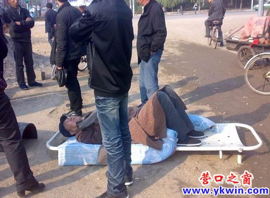 老人躺在擔(dān)架上,痛苦的呻吟著。