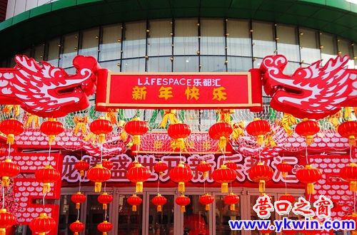 2012年是龍年, 營口樂購4樓一只金龍崛地而起,霸氣十足,金龍獻瑞千業(yè)旺,綠柳迎春萬戶安,祝福廣大市民業(yè)興家祥,萬事安康。